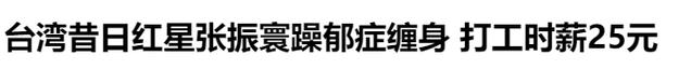 新浪娱乐2008年08月23日,关于“台湾昔日红星张振寰躁郁症缠身 打工时薪25元”的报道