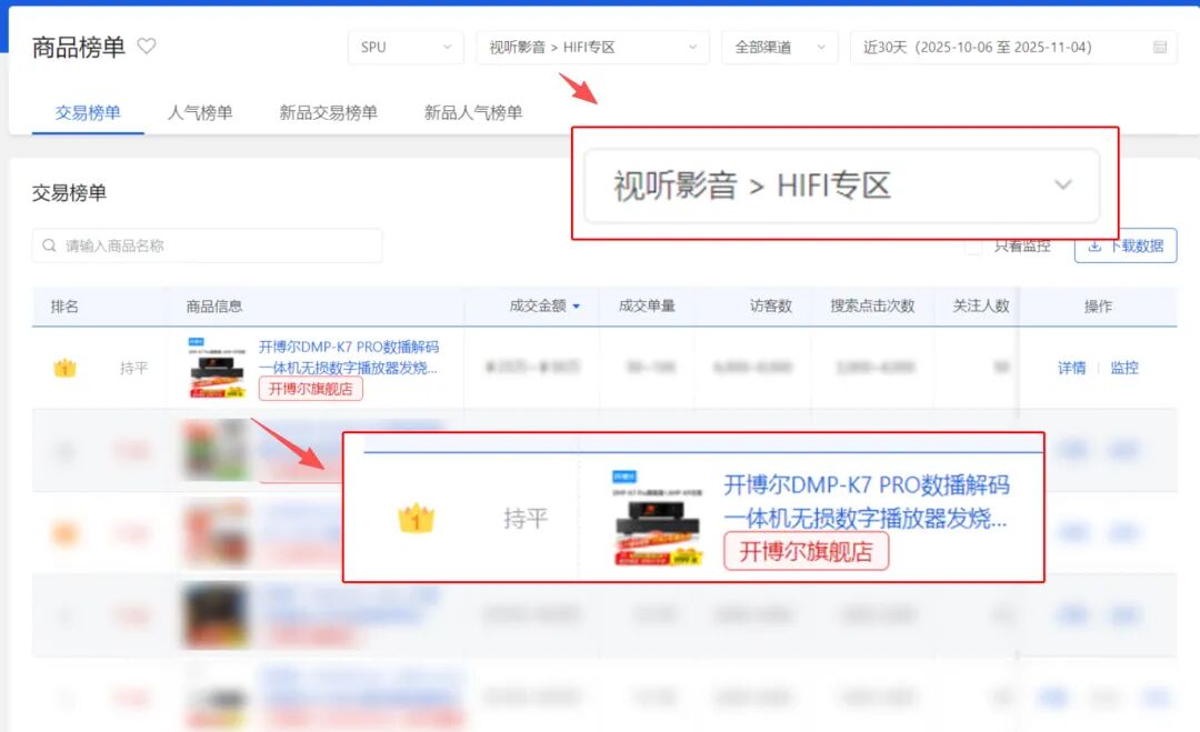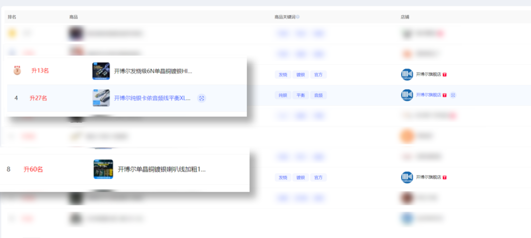 继续T猫平台,专业发烧HIFI线缆类目方面,开博尔前十占六,霸榜!