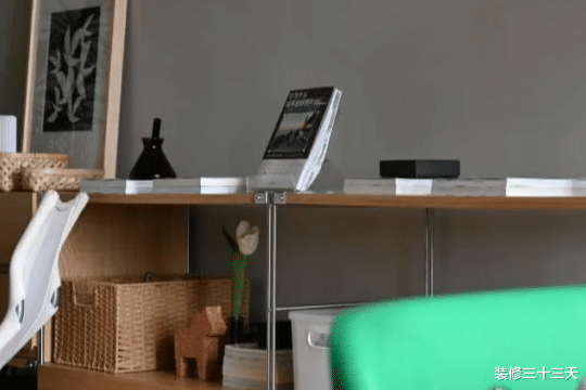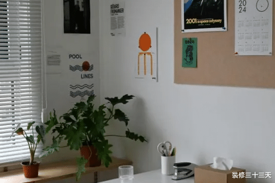 ▲ 次卧整体上是白木色的搭配。书桌上方定制了毛毡板,用作日常留言与海报展示
