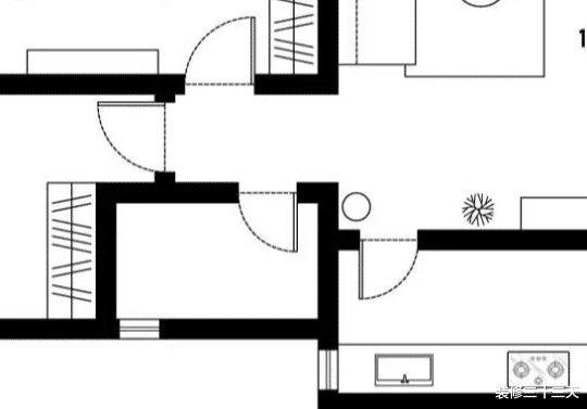 ▲ 改造前的房子,是非常传统的装修,猪肝红的房门、米色壁布、亮光瓷砖。客厅里的家具摆放十分不合理,茶几被推在电视柜旁,显得杂乱。客厅的另一面,放置了一张硕大的 L 型沙发,整个公共区域被沙发所占据,没有合适的用餐位置