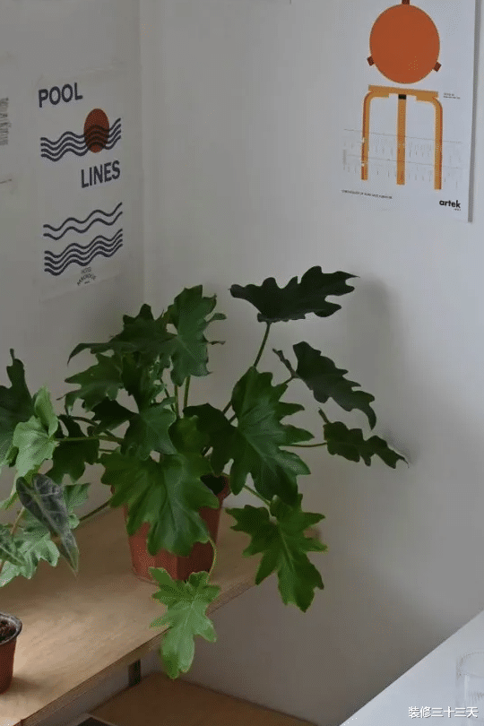 ▲ 搁架是用海洋板制作的,木蜡油涂装,支架是金属镀镍的材质。窗台放满植物,在城市的喧嚣之中,也能感受到自然与宁静