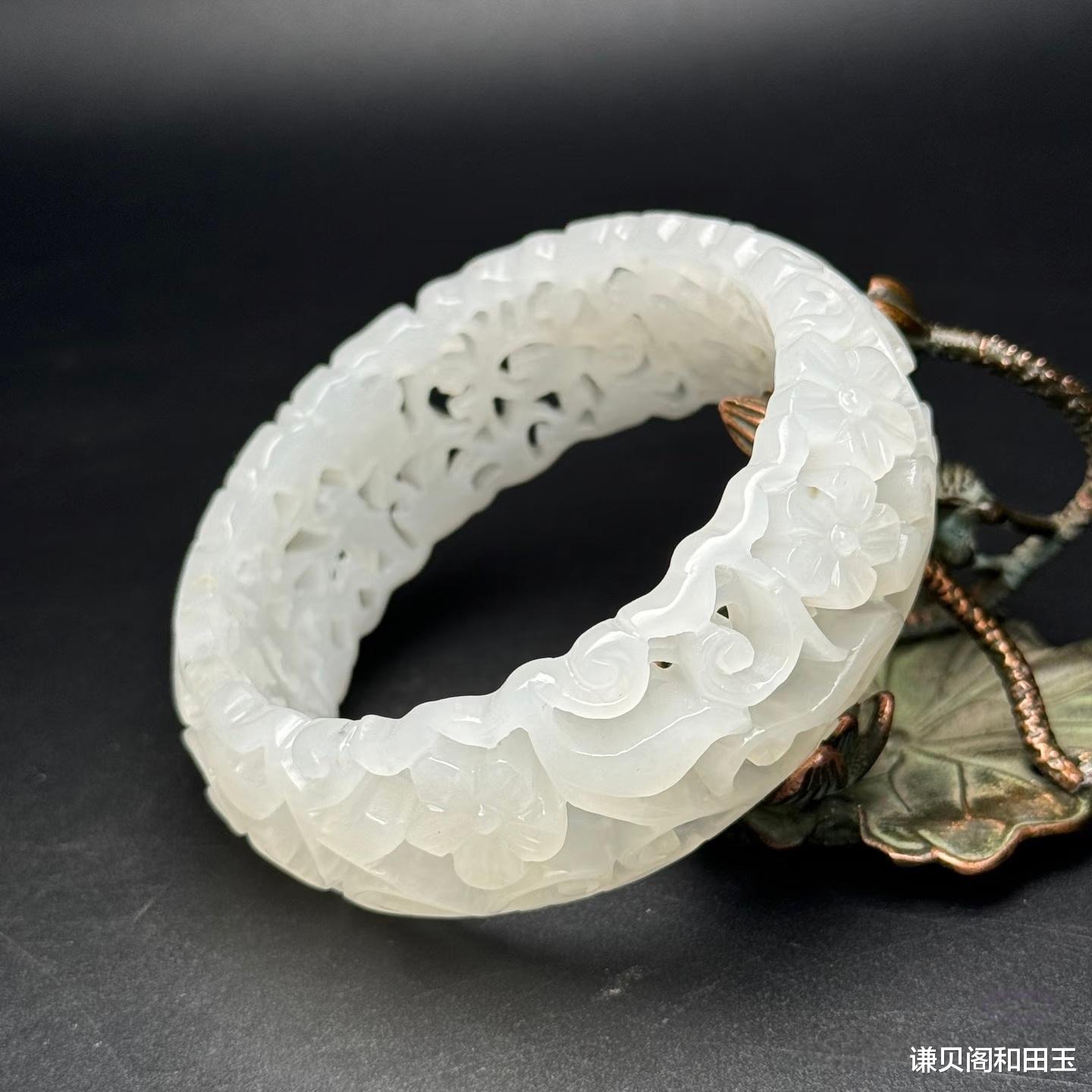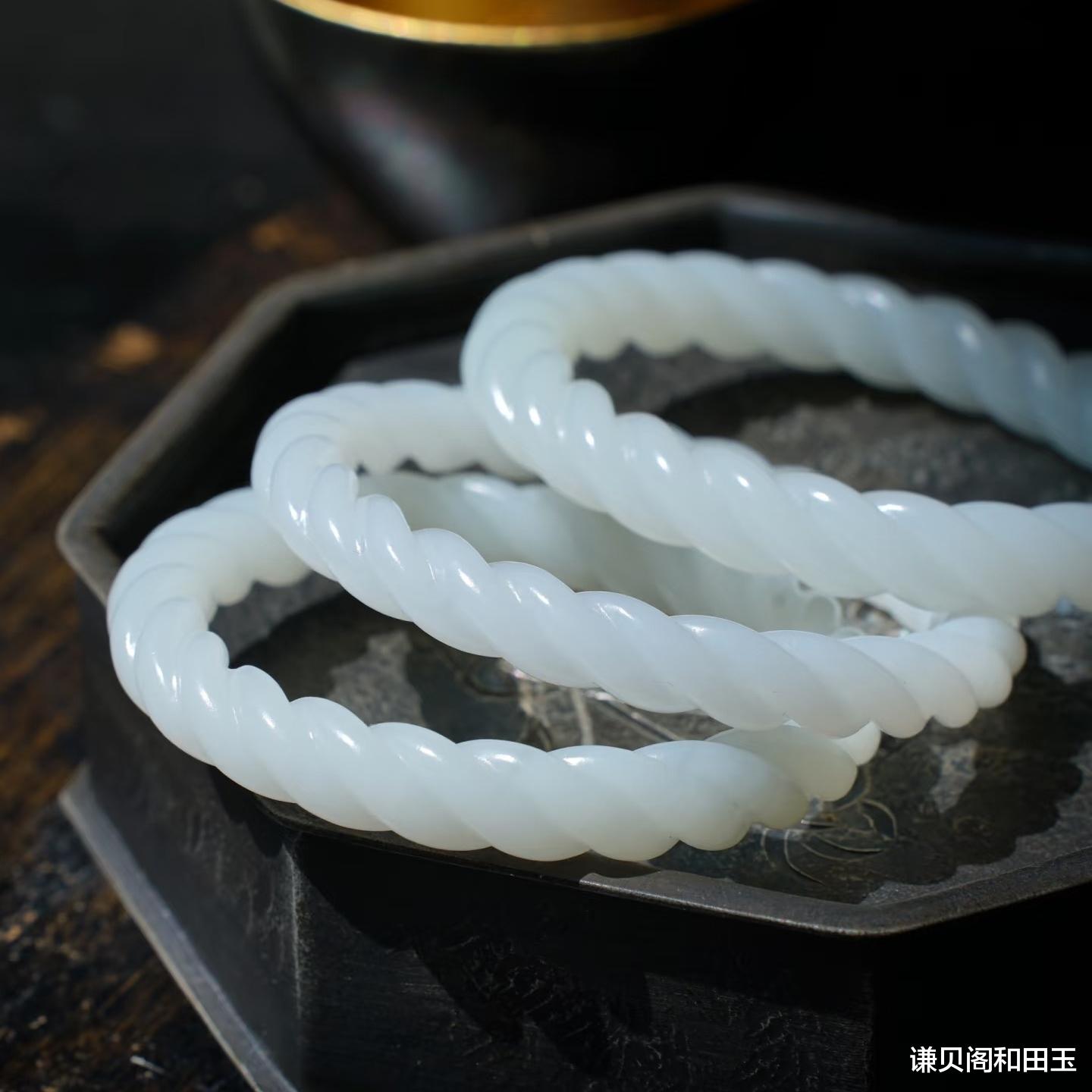 这种镯型把玉工发挥到淋漓尽致,由于和田玉韧性比其他所有玉石都好,因此只能用和田玉来做。