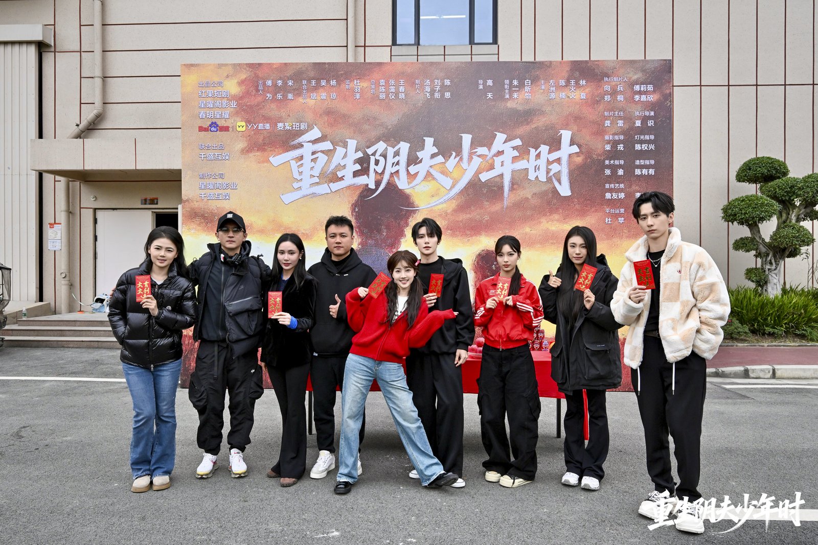 在总策划、千盛互娱总经理袁陈丽女士的主持下,监制杜羽泽、制片人刘子衔、导演高天及主演朱一未、白昕怡共同揭幕。随着红幕揭开,礼花齐放,这部备受期待的“重生”题材短剧正式进入拍摄阶段。