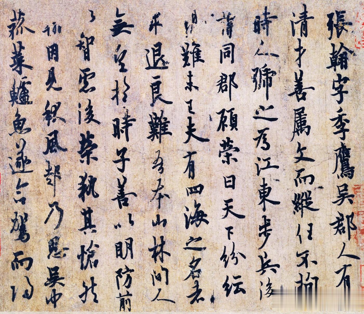 帖二:欧阳询《张翰帖》逐行高清分享此帖尺寸为:25.1厘米*31.7厘米,单字高度约为2.5厘米,字体宽度略窄。