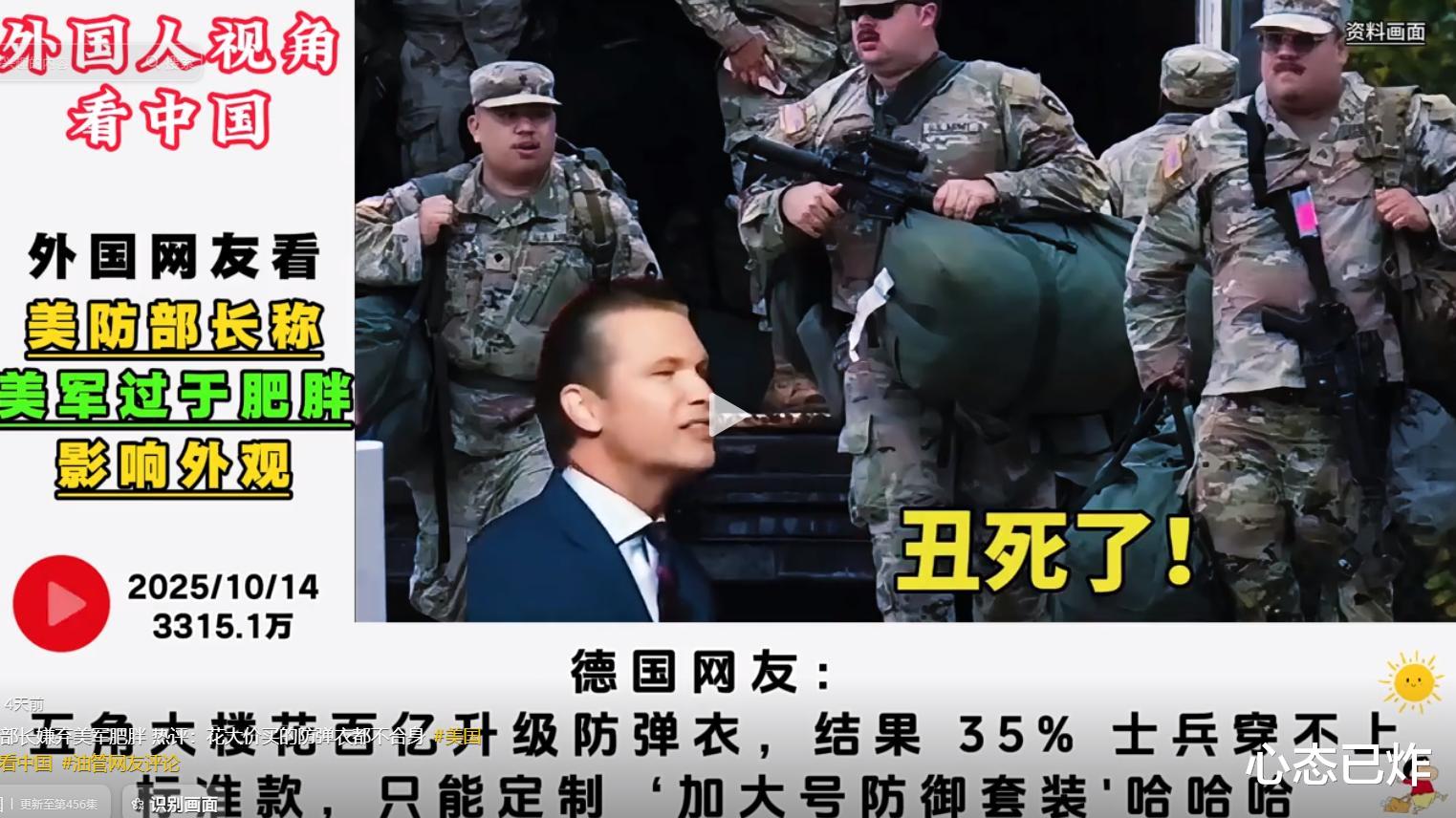 军人都大腹便便的,有的甚至几百斤,美军花费百亿给他们装备新的防弹衣,结果很多都小了不能用,我重新定制大号的,白白浪费了大笔资金,钱都是小事。