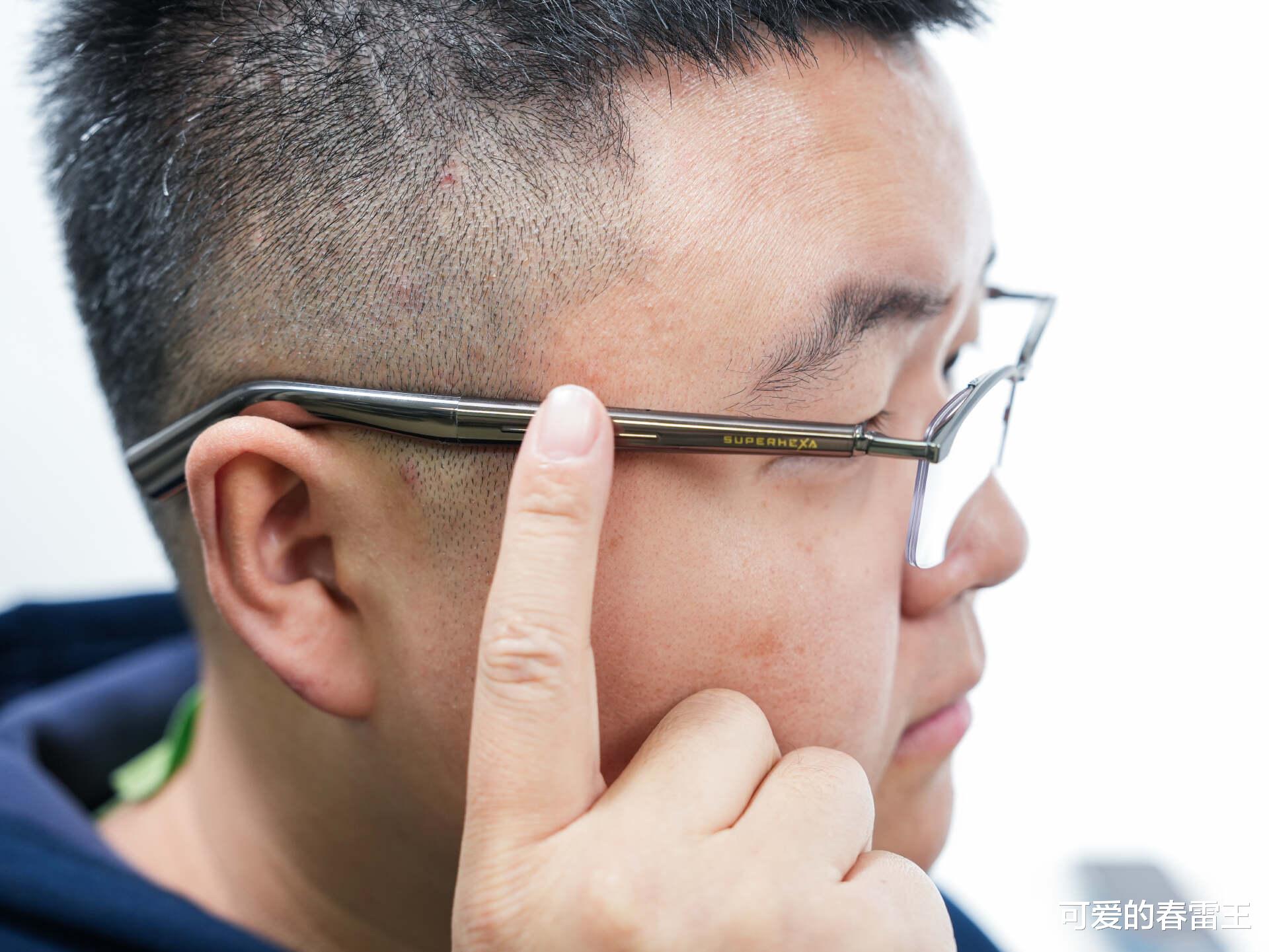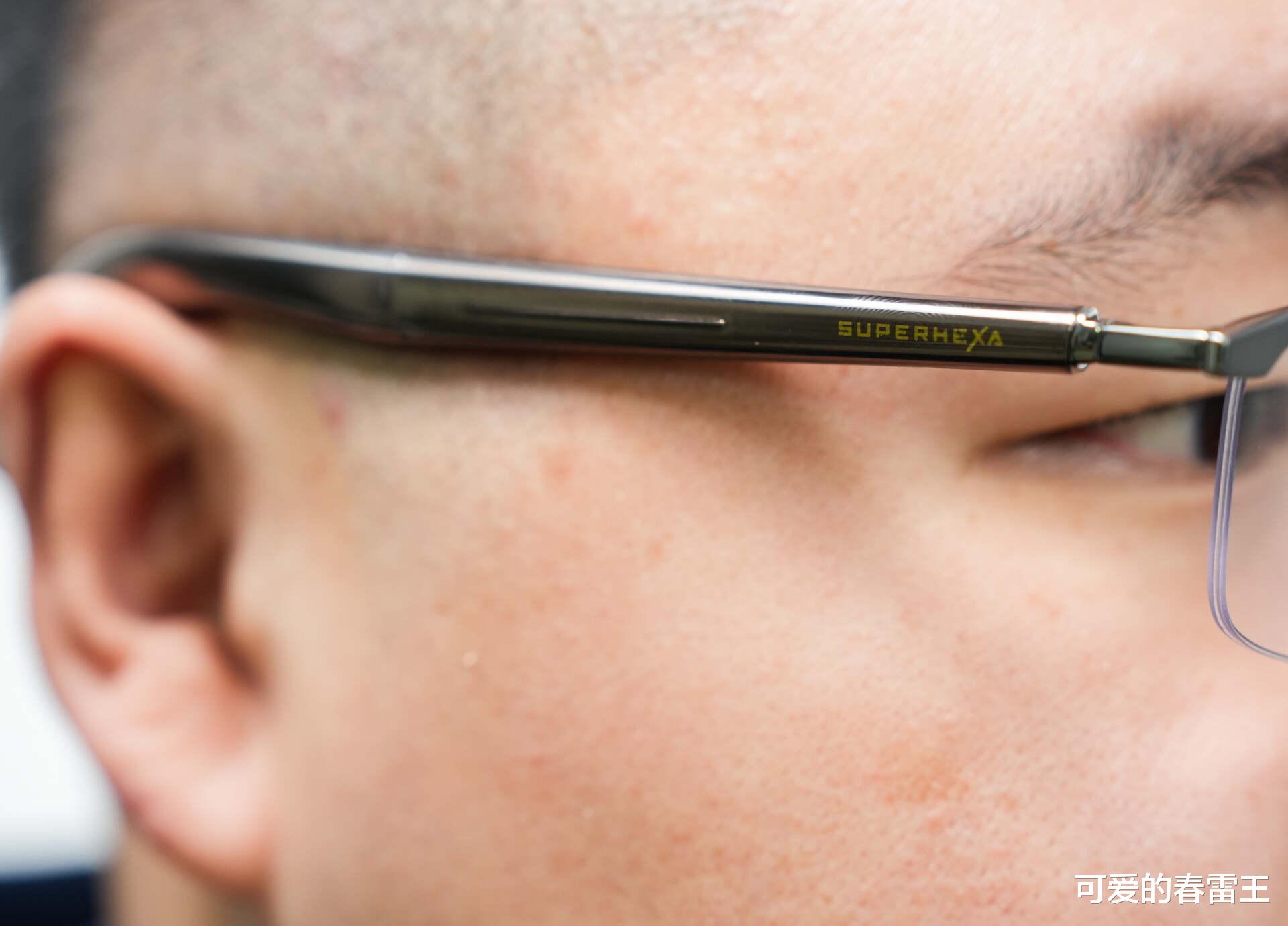 镜腿看起来要我之前的那副普通眼镜的镜腿要粗一丢丢,但界环AI音频眼镜的镜腿表面看着很光滑,线条很圆润,而且我手捏上去,还没留下指纹,有点耐脏的那种材质。