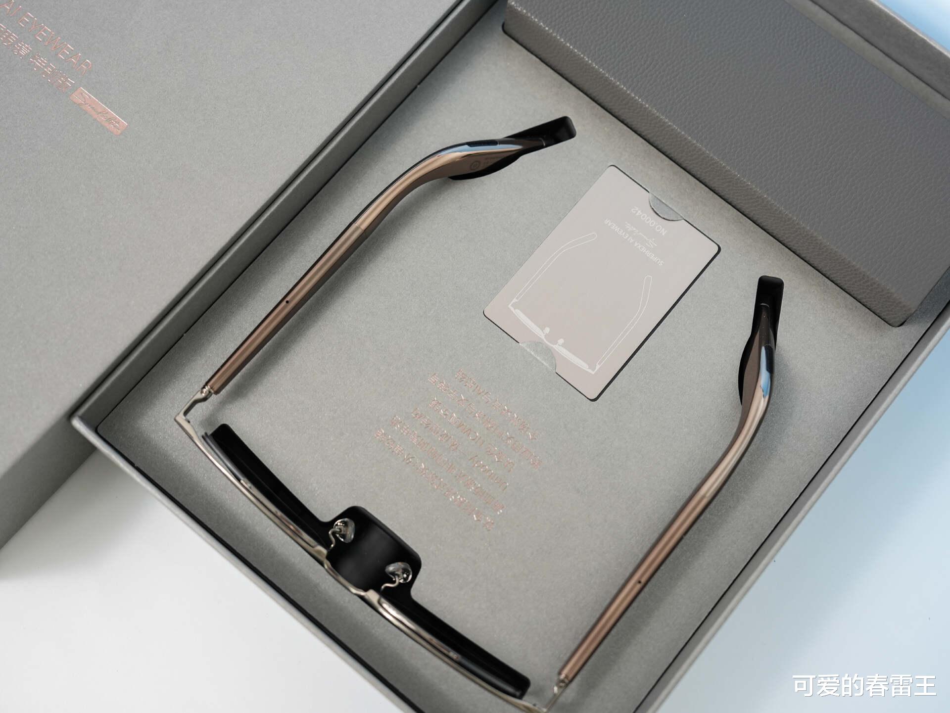 打开包装的时候,镜框和镜腿不同于一般的眼镜,居然还是分开放的,还需要我接一下眼镜。