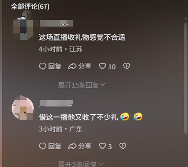 更吸引人眼球的,不是他直播的回应,而是直播间的礼物。
