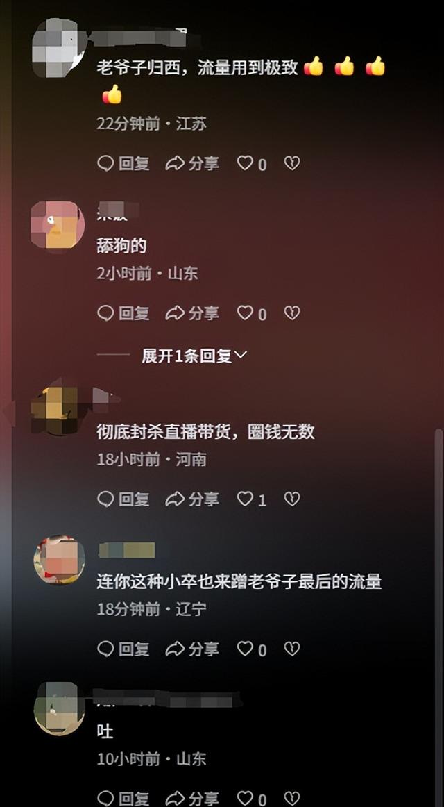 不少网友吐槽,这么着急吃流量红利,和老爷子的关系好也只是因为利益罢了。