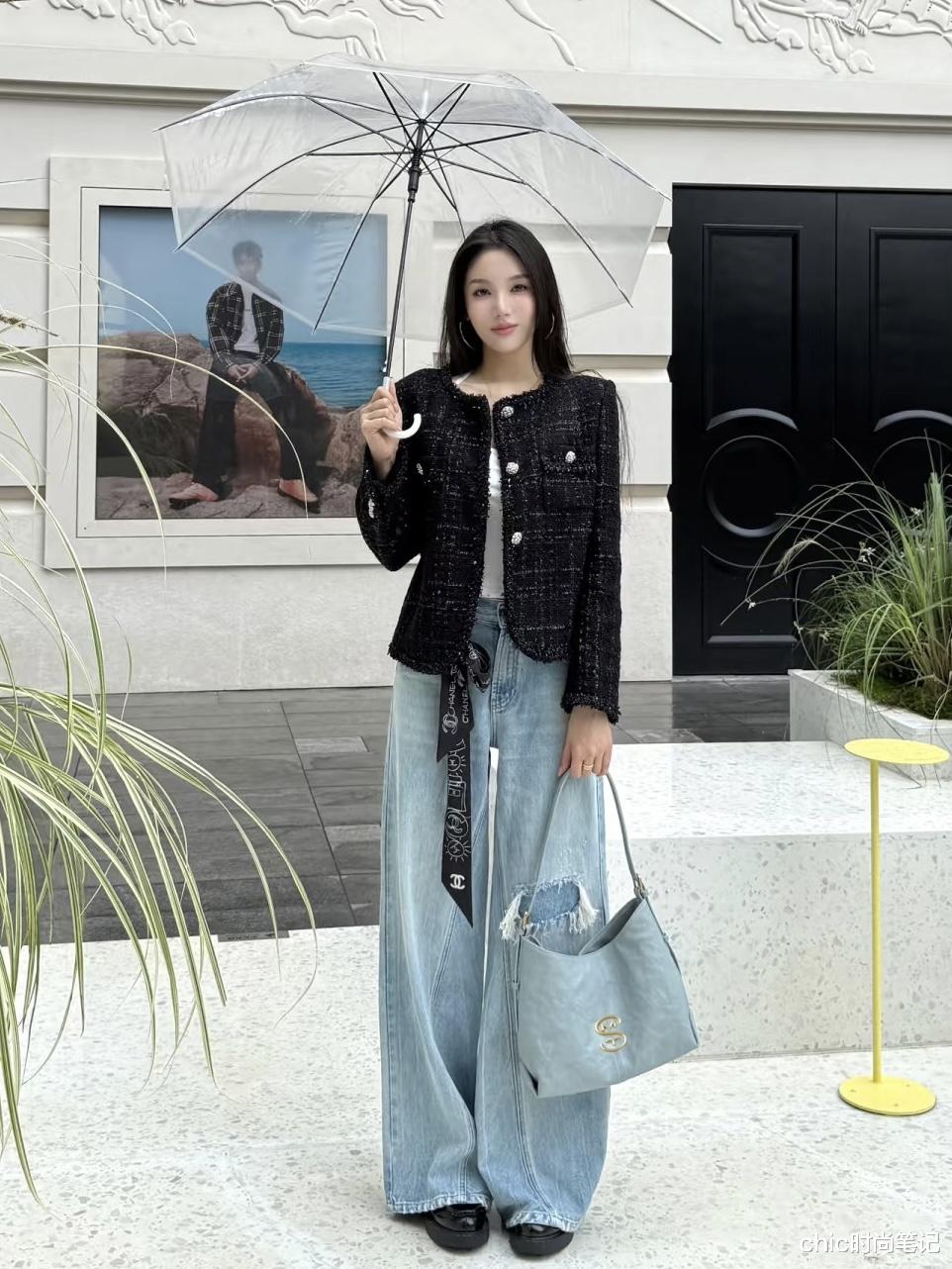 小香风外套若是搭配休闲风的牛仔裤,“暴走”熟女即视感,多了些随性不羁的个性,但又兼具时尚的摩登魅力。
