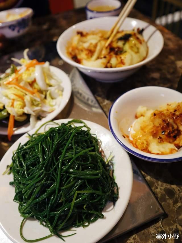 手抓羊肉、炖羊肉,没有膻味,鲜嫩可口,总觉得甘肃的羊肉比新疆的更鲜甜一些。早餐还有米汤油馓子、酿皮子、沙葱……在武威三天都吃不过来。