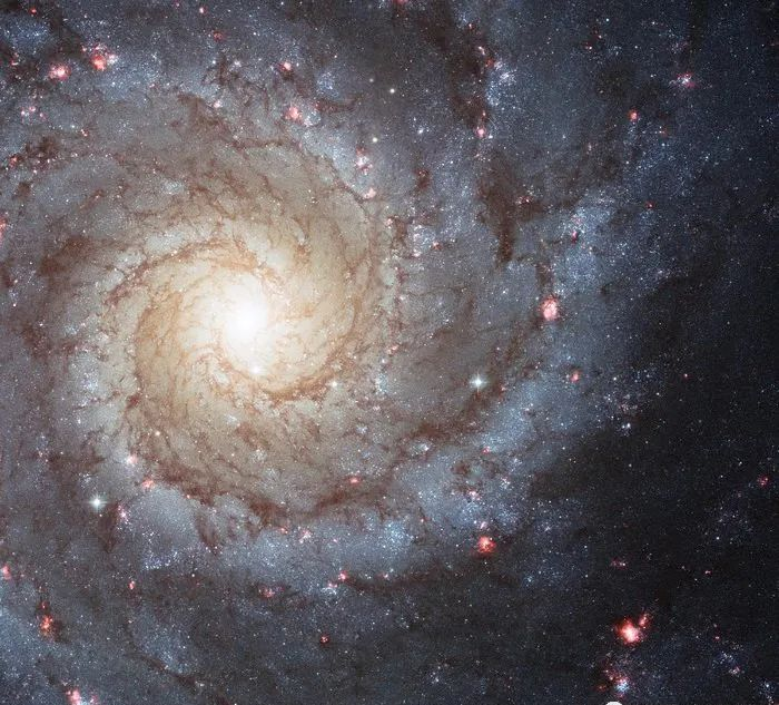 这是一张银河系的全景图。从图中我们可以看到,银河系呈漩涡状,具有4条明显的旋臂。但是银河系最引人注目的还是它的中心。银河系的中心非常地明亮,是整个银河系最明亮的区域。