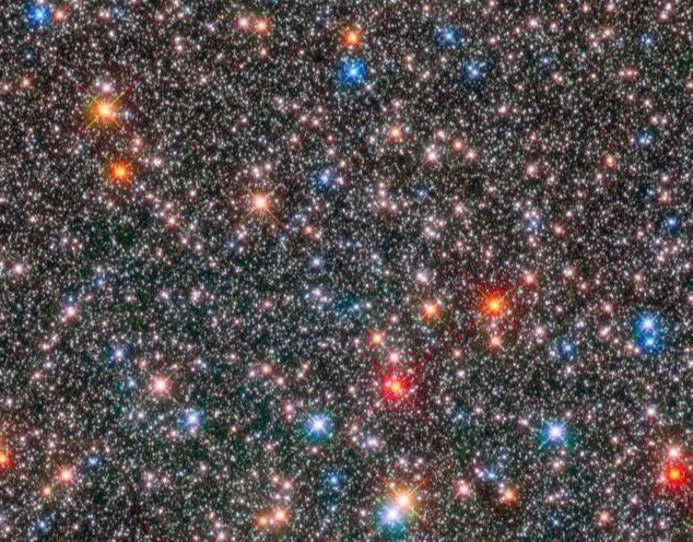 宇宙中哪有这么大的太阳?显然,它不是一颗巨大的恒星,而是数千万颗巨大的恒星挤在了一起。这就和我们夜晚看到的银河是一个道理。银河看上去像是一条若明若暗的光带,其实它是由大量的恒星组成的。由于这些恒星距离我们实在是太遥远了,所以它看上去就像是一条光带。银河系中心的恒星是非常密集的。科学家观测发现银河系最中心的恒星密度高达每立方光年28.9万颗。这是什么概念呢?我们把它和太阳所在的区域做一下比较就知道了。