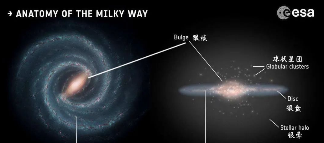 银河系主要分为4个部分:银心、银盘、银晕和银冕。其中银心就是银河系中心最亮的那部分。据科学家观测,地球所在的太阳系距离银河系中心大约2.4~27万光年。银河系的银心部分呈现出很亮的球状。因此,假如我们从银河系之外俯瞰整个银河系,它就像一个非常明亮的大“太阳”。银心部分直径大约有2万光年,厚度约1万光年。