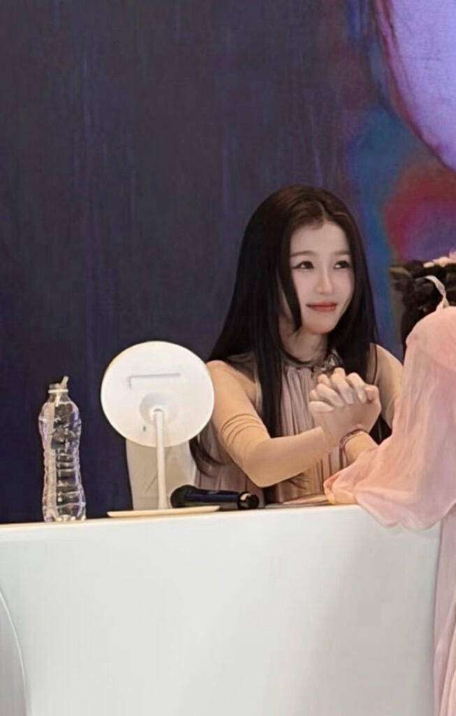 为了让这段互动更加有纪念意义,粉丝们提前准备了各式头饰和道具。在拍照环节,虞书欣主动试戴,并配合调整角度,展现出随和、亲切的一面。粉丝们用镜头记录下每一个瞬间——签名时专注的神情、互动中灵动的笑容——这些画面迅速在网络上流传开来,引发无数网友的共鸣与讨论。