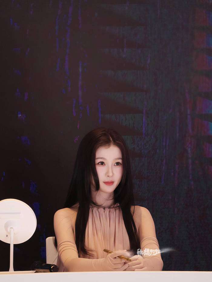 互动进行时,虞书欣主动与粉丝保持眼神交流,每一次签名都仔细确认名字的写法,甚至在专辑上留下独一无二的指纹印记。面对激动到语速加快的粉丝,她耐心倾听,时而托腮凝神,时而捂嘴轻笑,那双温柔的眼神如同一阵暖风,瞬间融化了现场的紧张与激动,营造出格外温馨的氛围。