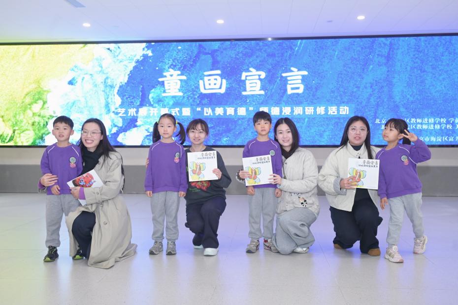 2025年10月29日上午,由北京市海淀区富力桃园幼儿园承办的北京市海淀区学前教育品牌“童画宣言”发布会暨“以美育德”师德浸润研修活动在北京市海淀区教师进修学校成功举办。以富力桃园幼儿园艺术展开启海淀区学前教育品牌“童画宣言”,并通过一场融合仪式、展览与研修的综合性活动,生动诠释了“以儿童为中心”的教育理念和“以美育德”的师德建设新路径。