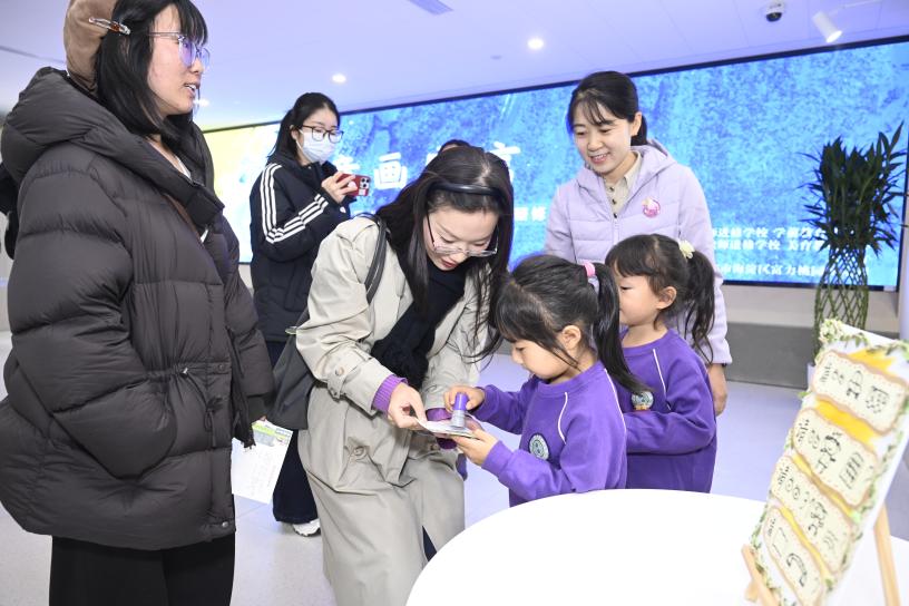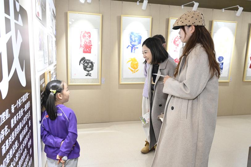 教师们手持活动小卡,穿梭于五大主题展区。他们可以与“小艺术家”进行面对面互动,聆听由富力桃园幼儿园老师主讲的“绘画背后的教育故事”,并参与由富力桃园幼儿园教师团队主持的四个艺术体验工作坊。通过交流、观摩、体验与集章认证,教师们得以沉浸式地理解“童画宣言”的教育内涵,在艺术氛围中实现师德修养的内在生长。