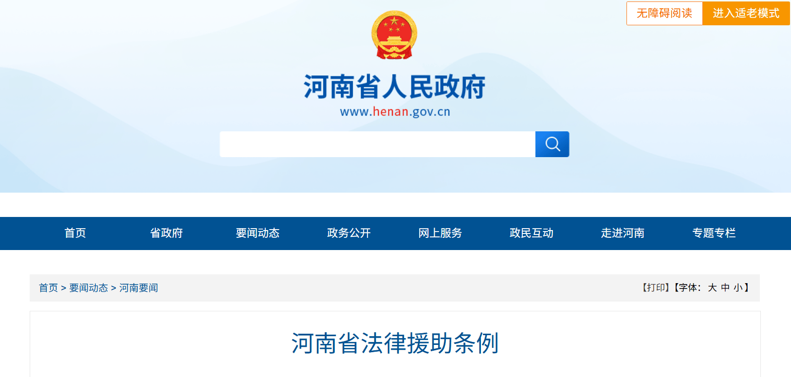 2025年9月29日,河南省第十四届人民代表大会常务委员会第二十次会议审议通过《河南省法律援助条例》,该条例将于2026年1月1日起正式施行。原2002年通过的《河南省法律援助条例》同时废止。