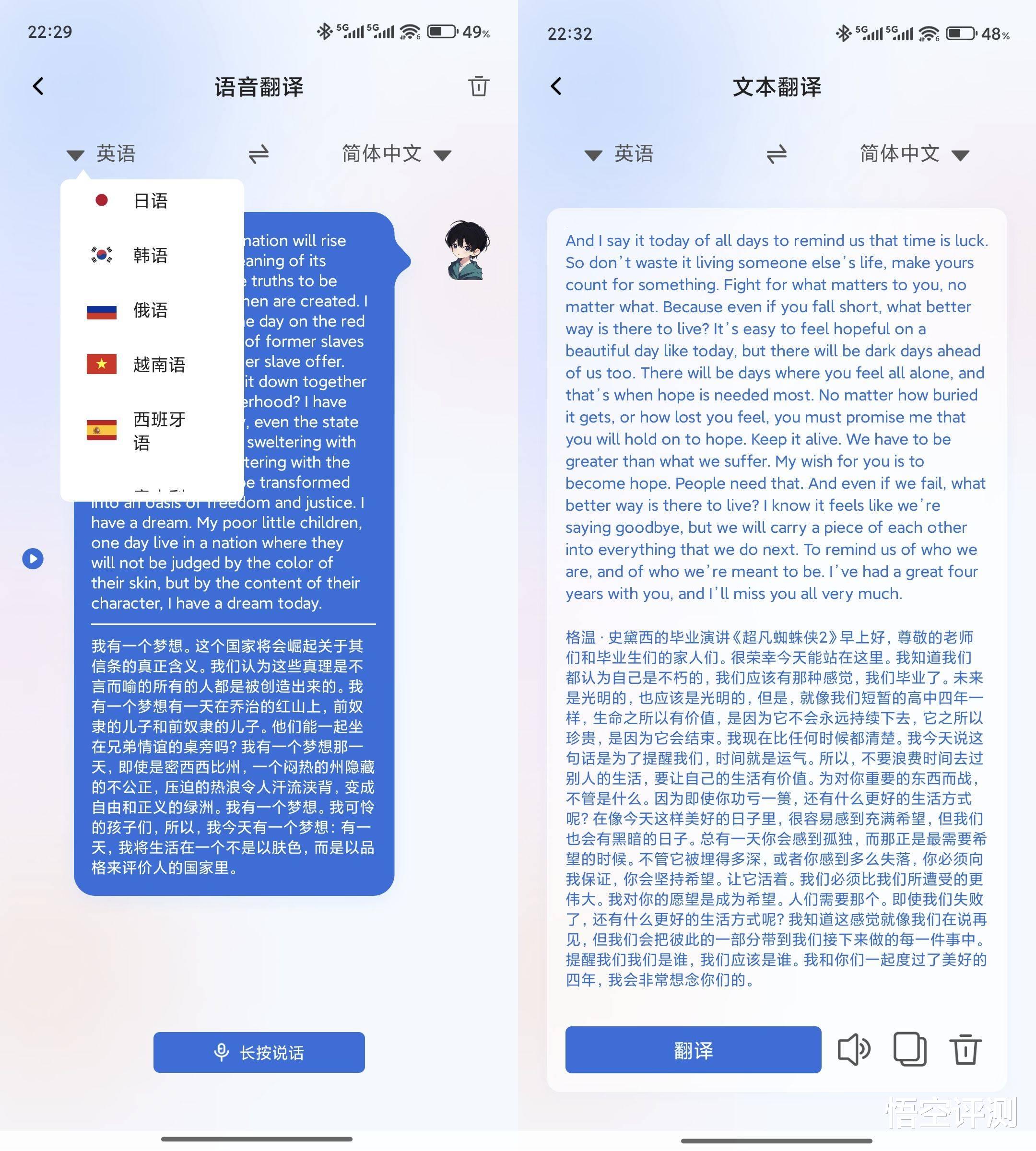 语音翻译很强大而且实用性很强,我特意找了一段标准的英语片段,翻译极为精准。