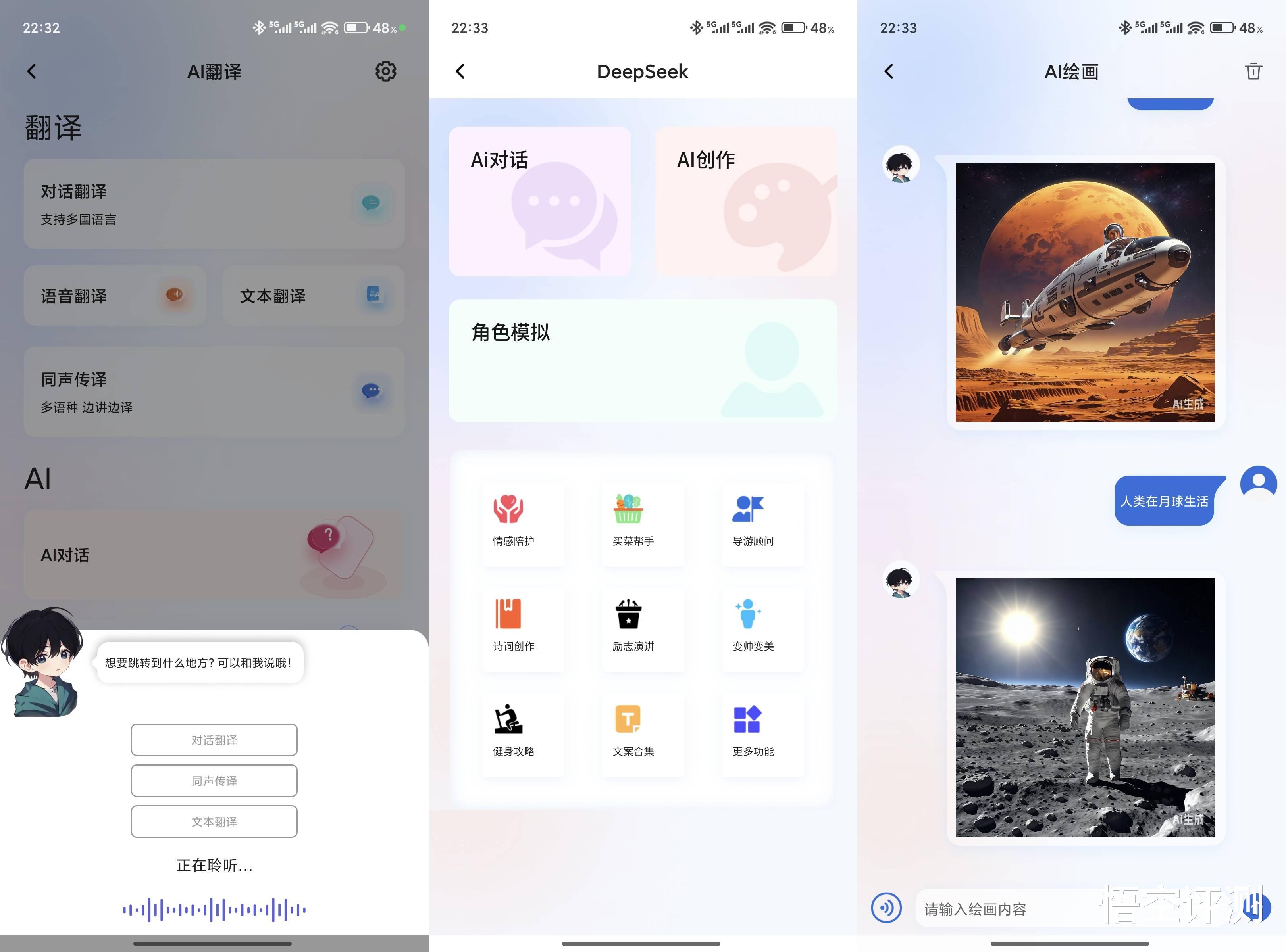 我们在APP的首页,可以看到主要的功能,包括翻译和AI两个大块,相辅相成。