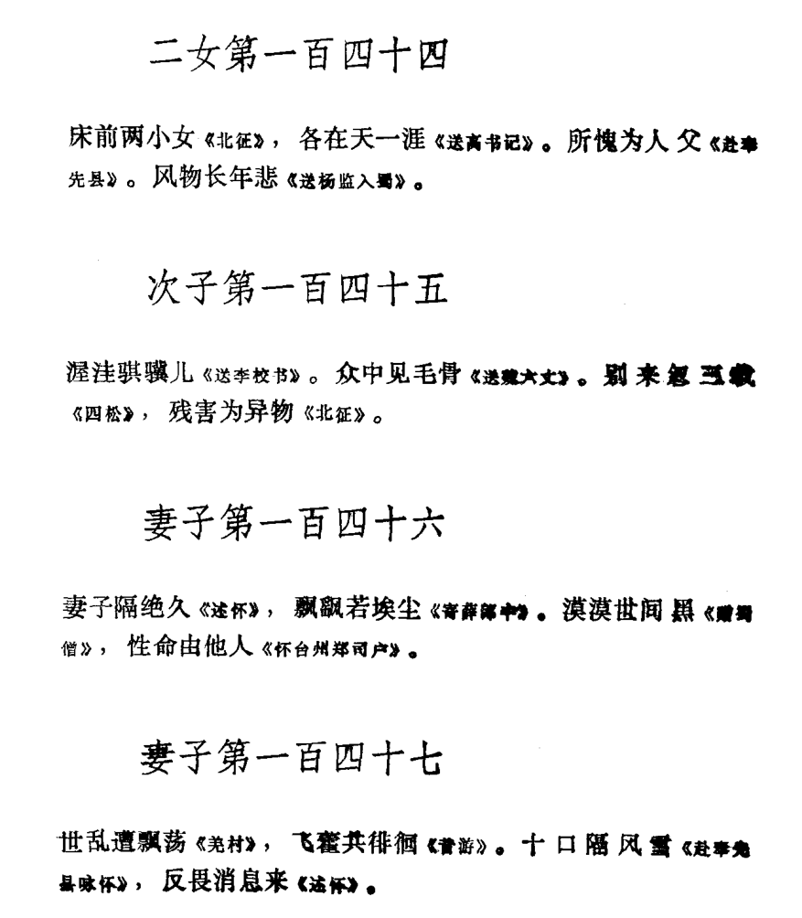某人提议,用唐诗句子,或陶渊明诗句,或只用杜甫诗句,重新组合成一首新诗,比谁的巧妙、自然。众人纷然相应,即绞尽脑汁,各显神通。