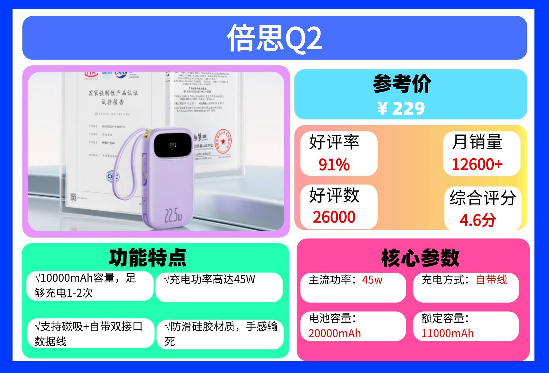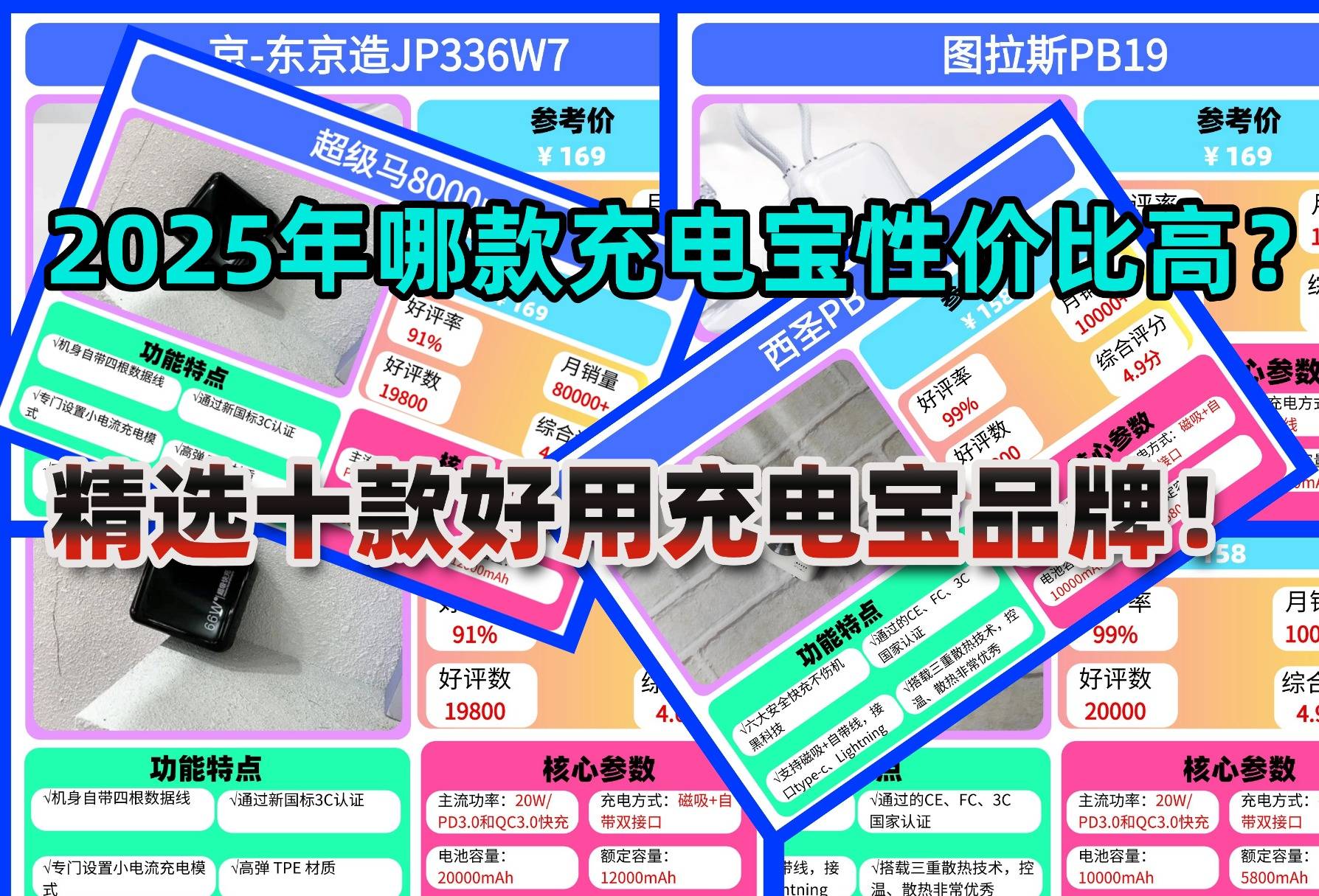 在充电宝市场,选择一款性价比高的产品确实让人头疼。随着手机、笔记本等设备的耗电需求不断增加,充电宝早已成了必不可少的随身装备。但是,面对琳琅满目的品牌和型号,我们常常陷入“快充”和“安全性”的两难。很多充电宝标榜超快充电,却在高负载下发热严重,甚至存在电池损坏的风险;或者容量大,但充电效率极低,完全不符合日常需求。此外,一些低价产品虽然看似优惠,但往往存在不稳定的充电性能和较差的耐用性,使用体验差强人意。为了让大家避免这些坑,今天给大家精心挑选了10款性价比超高的充电宝,分别是有西圣、华为、倍思等充电宝品牌,无论是容量、充电速度、还是安全性,这些产品都能完美平衡,真正做到了高效、安全、耐用。