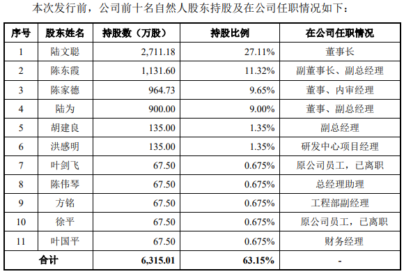 最新招股书显示,2025年6月10日,陆文聪将其所持股份中的900万股无偿转让给现年49岁的女儿陆为(1976年出生)。据介绍,陆为于2016年以来历任公司销售经理、董事长助理、副总经理等职务。