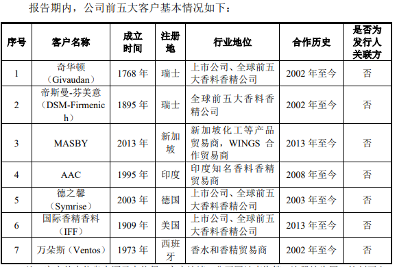 公司与奇华顿、国际香精香料、宝洁等公司长期合作。