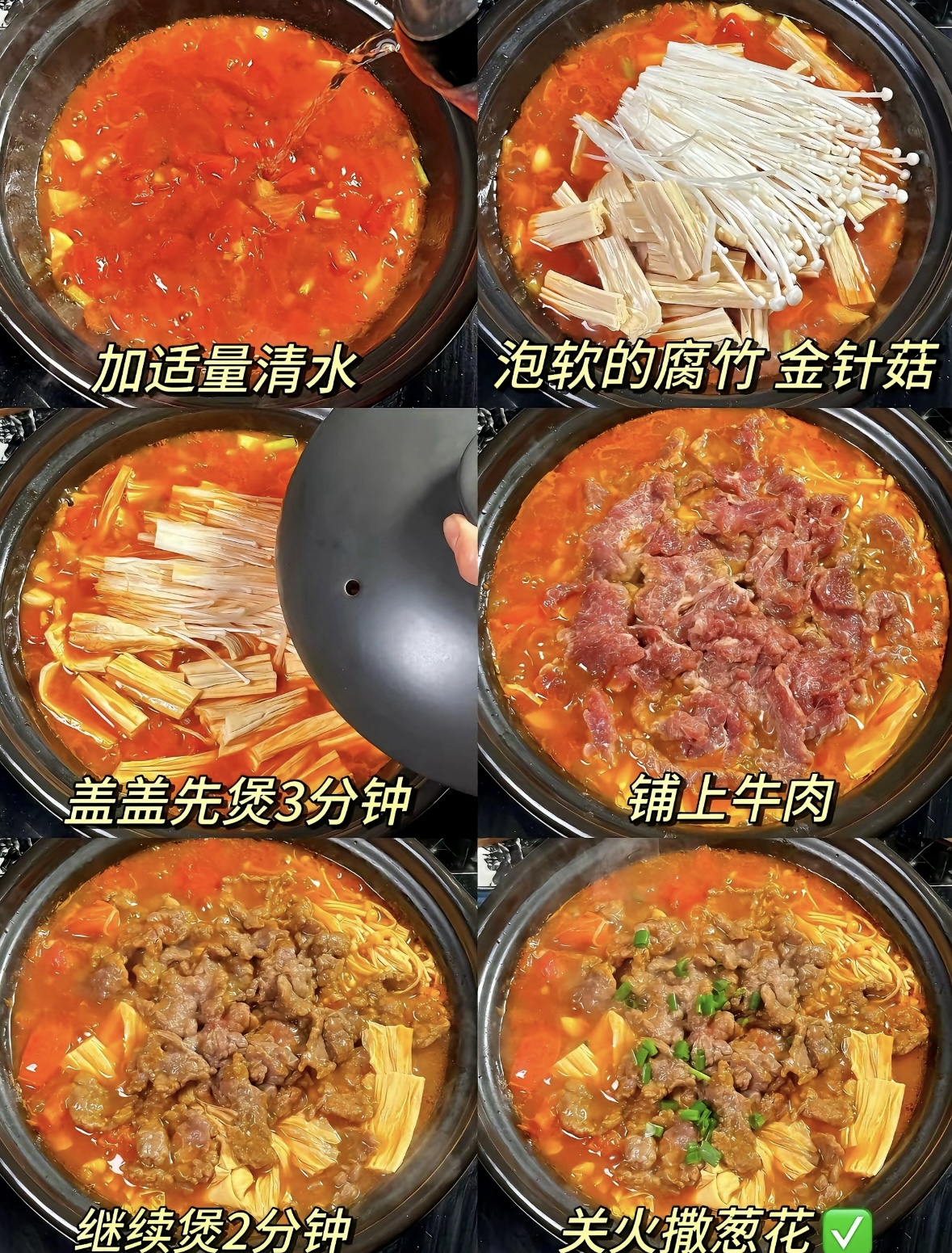 谁说下班只能点外卖?只要一口砂锅、三样超市就能买到的食材,二十分钟就能让全家把锅围成一圈。番茄腐竹牛肉煲,名字听着像饭店硬菜,其实是“懒人+手残”双友好型选手:牛肉嫩到弹牙、腐竹吸饱酸甜汤汁、番茄咕嘟成天然浓酱,最后连葱都舍不得浪费,直接拌饭三碗起步,减肥誓言先放冰箱冷静冷静。