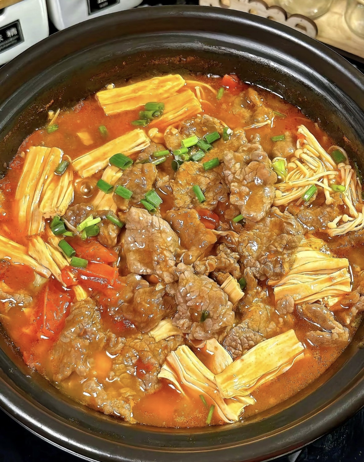 小贴士顺手写给手残党:没有砂锅就用厚底奶锅,火力小一点;牛肉别煮老,变色就收工,余温会继续加热;番茄太酸就多加糖,太淡就补盐,味道要像恋爱,酸甜刚好;腐竹别泡过头,否则下锅就找不着;剩的汤汁第二天煮面,能香到邻居敲门。