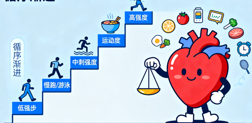 强度要循序渐进:尤其是平时缺乏运动的人,切忌突然进行高强度剧烈运动,这可能反而诱发心律问题。应从低强度开始,逐步增加。