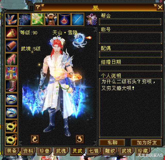 今天给大家展示一下小编无意间在【天下第一】服务器偶遇的卡90级满二天山,个人说明也是非常有特色,主打一个“人菜瘾还大”!