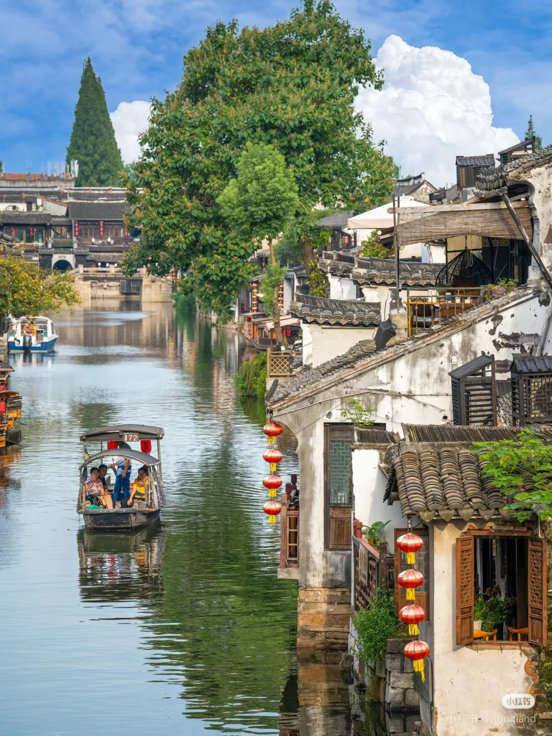 特别是下小雨的时候,古镇被薄雾笼罩,廊棚下的灯笼在雨丝中摇摆。那种江南水乡特有的韵味,真的很容易让人陷进去。