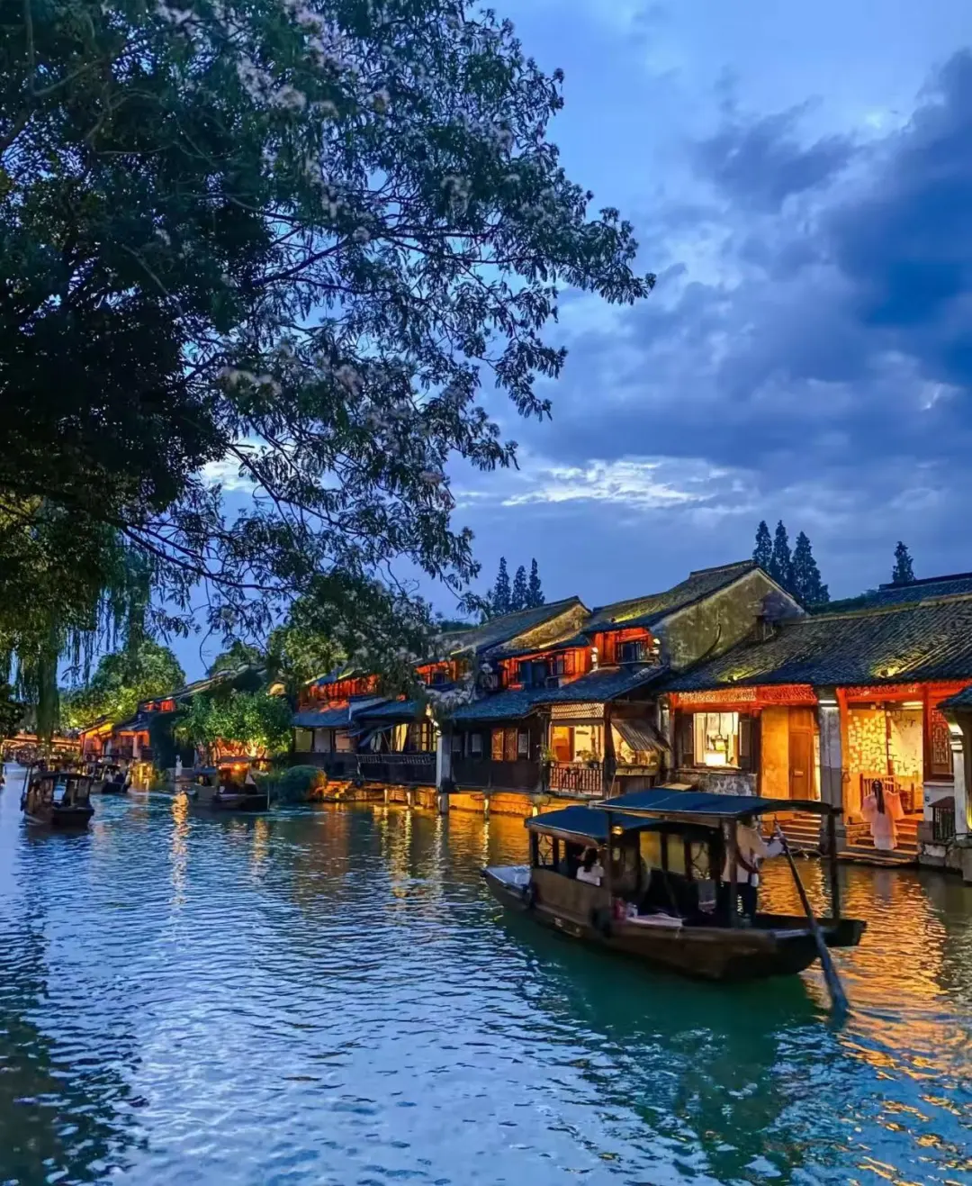 华灯初上时,整个水乡被灯光勾勒得如梦似幻。坐在河边的茶馆里,点一壶龙井,看着对面古楼里透出的暖黄色灯光...那一刻真的会让人忘记时间。