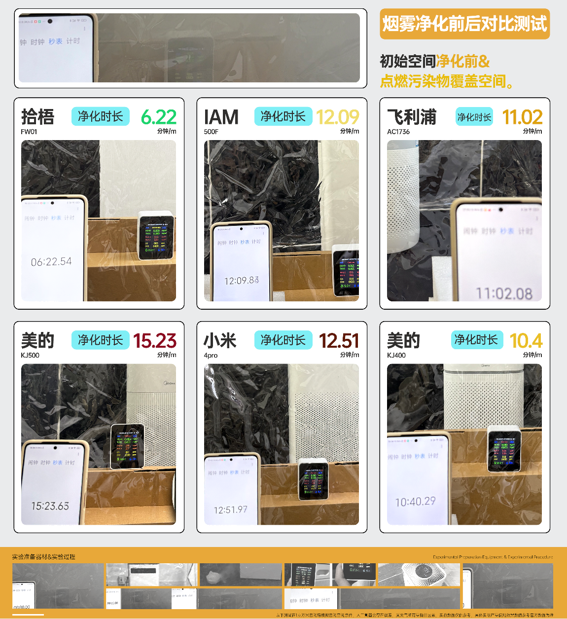 这几款机型净化时长在10-11分钟左右,整体表现尚可,能够满足日常家庭和轻度烟雾环境的需求,但在效率和深度上相较拾梧有一定差距。