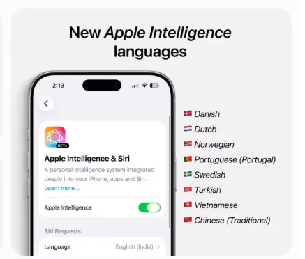 Apple Intelligence 新增繁体中文、丹麦语等八种语言支持;