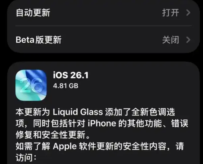 iOS26.1正式版本升级方法