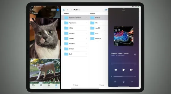 6、多任务功能优化重新引入 Slide Over 悬浮分屏功能,用户点击应用窗口顶部绿色图标并选择 “Enter Slide Over” 即可启用。