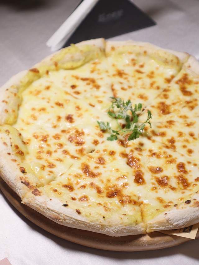 猫山王榴莲披萨:榴莲果肉铺得超实在,香气浓郁到上头!饼底薄脆,拉丝效果绝了。