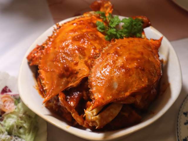 新加坡风味辣炒螃蟹也值得一试!蟹肉饱满,酱汁香辣浓郁,一秒穿越到狮城~