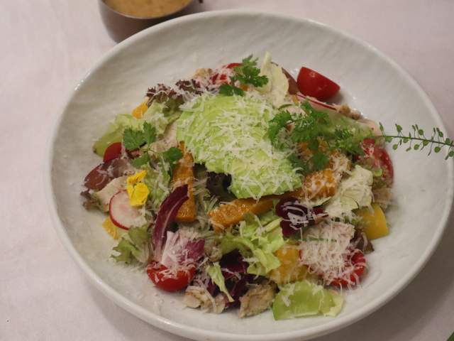 先上一盘清爽担当——烟熏三文鱼蔬菜沙拉!新鲜脆嫩的各式蔬菜,烟熏三文鱼香气浓郁,搭配特调酱汁,一口下去清爽开胃,瞬间唤醒味蕾~