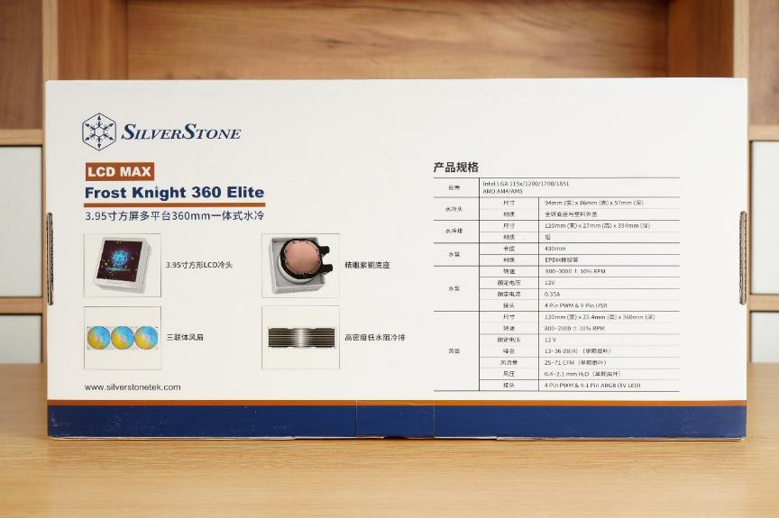 初见银欣Frost Knight 360 Elite(下文简称E360 MAX)的产品外包装,熟悉的 白蓝家族基调瞬间浮现,这是银欣多年来贯穿高端散热产品线的标志性配色。质保方面银欣给到了3年质保,质保期内漏液100%包赔,并且支持个人送保,相当务实的政策,要个点个赞。