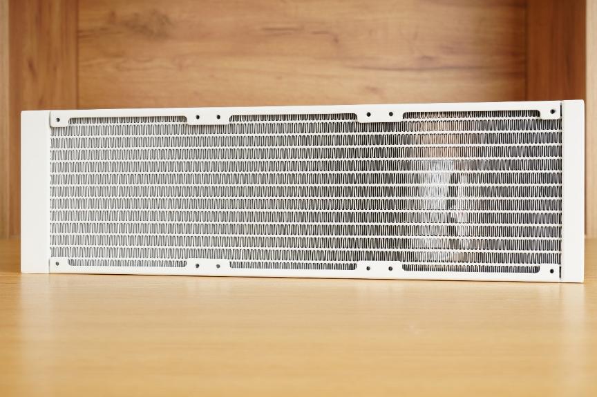 从图中也可以看到冷排的鳍片高度也几乎等同于边框高度了,而且鳍片没有出现褶皱变形等影响观感的问题出现,也再次足以证明其做工品控的优秀。