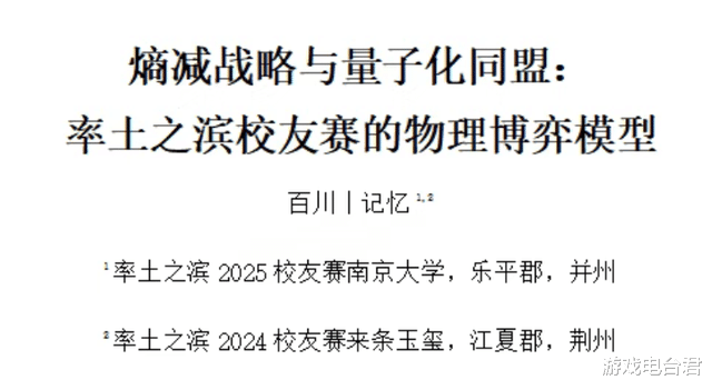 在今年校友赛前,他真给盟主递了一份正经八百的战术分析报告,标题没写“怎么打城”,而是搬出了热力学第二定律。他说,刚开区那会儿,各路势力抢资源,就像封闭系统里的熵增:越打越乱,内耗不断。怎么办?搞“熵减战略”,定规矩、分任务,谁开荒、谁压线、谁守后方,全都提前规划好,把混乱值降到最低。