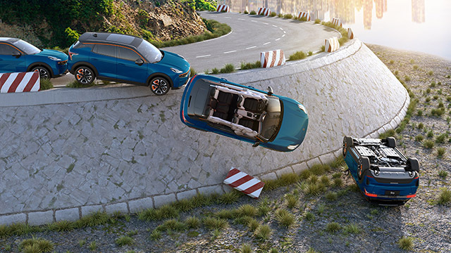配置方面,主要来看一下安全部分。领克06 Remix搭载了RP翻滚保护系统,系统会根据车身周边的角度传感器来判断车身当前状态,如果角度超出阈值,系统会提前爆开气囊来保护车内乘客。目前网上有过类似的事故,领克06 Remix的车主均带来了平安的喜讯。
