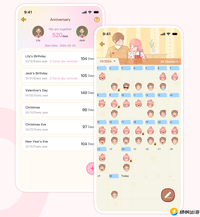 日历App“万年历”的开发者——重庆优路科技有限公司,也推出了一款情侣向应用“心动日常”,并于2020年10月在国内App Store上线。四年后,2024年10月,公司将“心动日常”海外版Couple2推向海外市场,尝试在国际端探索更广阔的用户空间。