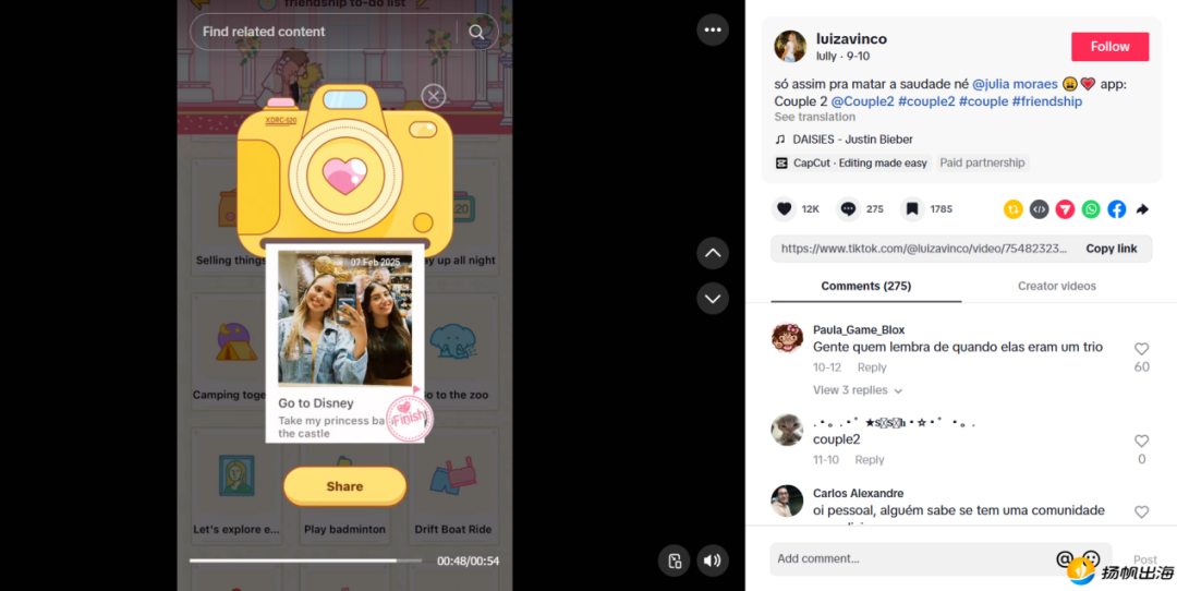 Couple2部分TikTok博主合作视频截图
