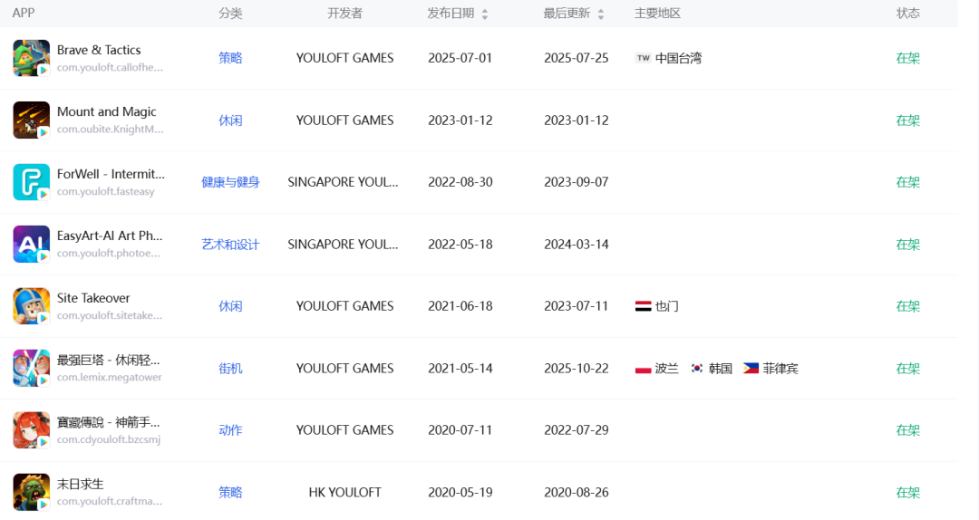 优路科技旗下谷歌商店在架产品,来源:点点数据