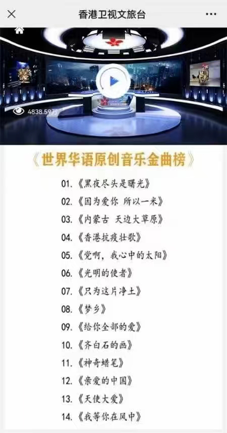 2022年,尹丽晶作品,独家版权,作词的《黑夜尽头是曙光》在香港卫视文旅台栏目中荣获《世界华语原创音乐金曲榜》,并于2022年4月13日在香港卫视文旅台首播。并通过亚太5号、6号卫星在全球157个国家和地区进行直播(展播)。
